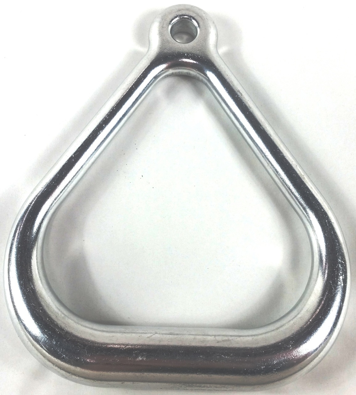 The triangular trapeze rings have a flat bottom for easier hand holding and are made of a durable aluminum alloy that is highly polished for a long-lasting shine. The rings now have a wider grip handle to meet ASTM standards. The inside diameter of the ring is 4.5 inches and the bottom grip is 1 inch in diameter. The hole for S-hook is 1/2″. This product can be used with the A6500, A6000, A5950, and A5725. It is expected to last for 2 years in harsh conditions and up to 5 years in optimal conditions, though some conditions may require replacement sooner. The weight of each ring is 0.95 pounds, and it has a tensile strength of 2800 pounds. The price is per ring.